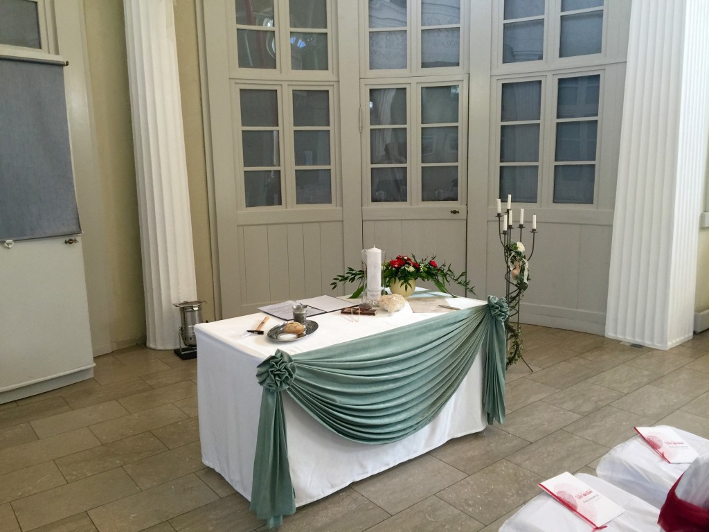 Das war aber für unsere weltliche Zeremonie mit christlichen Elementen nicht nötig. Zweiter Vorteil: Man kann direkt im Anschluss dort feiern.