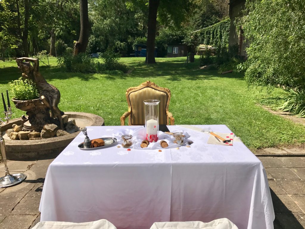 Am 14. August 2017 betreute ich eine freie Trauungszeremonie in Schochwitz. Dort gibt es das malerische Schloss Schochwitz. Betrieben wird das „Healing Castle“ von Lord James Welsh und Ingrid Straub-Zerfowski. Sie hatten seinerzeit bei der TV Show „Mein himmlisches Hotel“ bei VOX teilgenommen. Malerisch, zauberhaft und ein bisschen britisch kommt das Schloss daher. Es ist ein besonderer, energiegeladener Ort. Genau das Richtige für eine besondere Hochzeit – Anjana und Friedemann hatten sich für das Schloss Schochwitz entschieden.